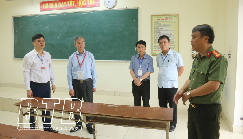 Các đồng chí lãnh đạo tỉnh và đoàn kiểm tra của Bộ Giáo dục và Đào tạo kiểm tra công tác tổ chức kỳ thi tại Hội đồng thi tỉnh Thái Bình.