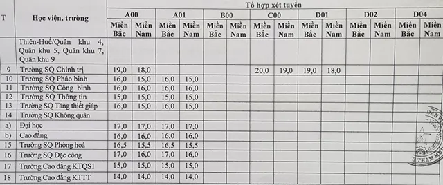 Điểm sàn xét tuyển vào 17 trường Quân đội từ 15 đến 24