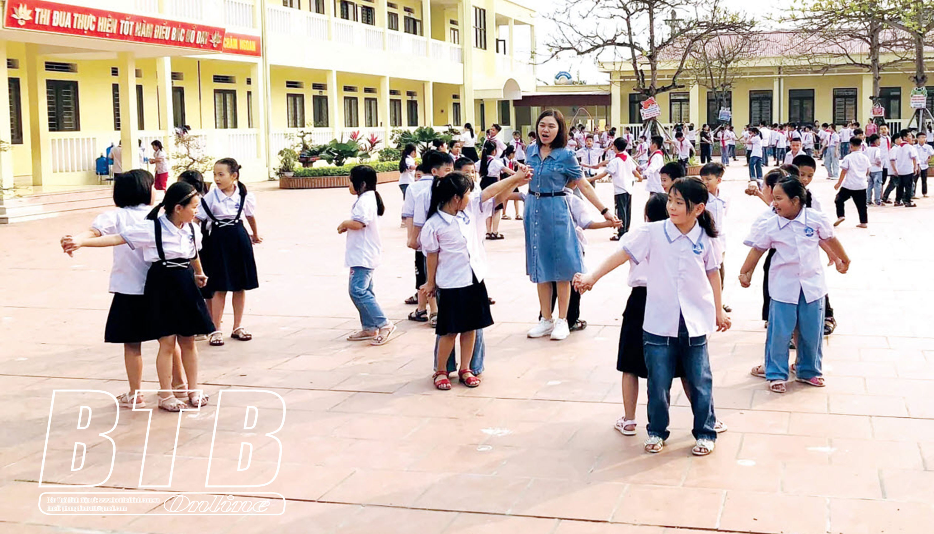 Giờ ra chơi của cô và trò Trường Tiểu học và THCS Đông Thọ (thành phố Thái Bình).