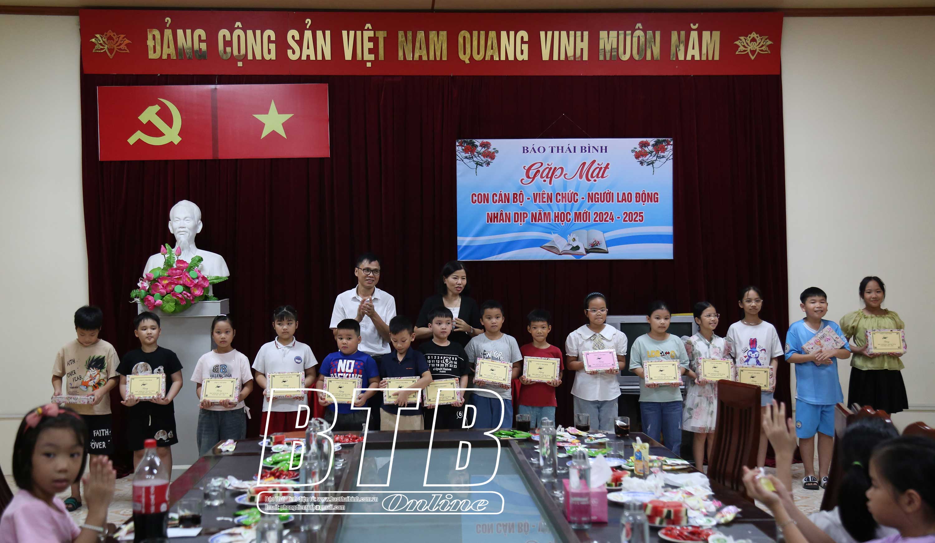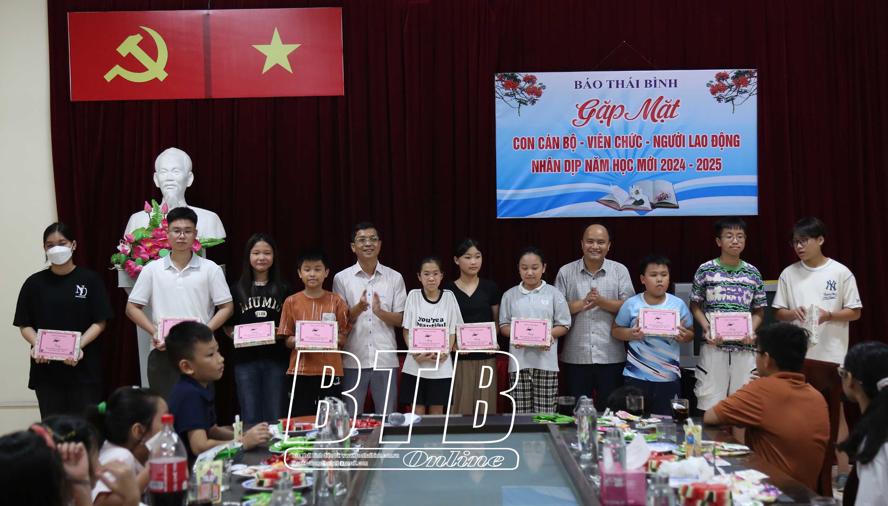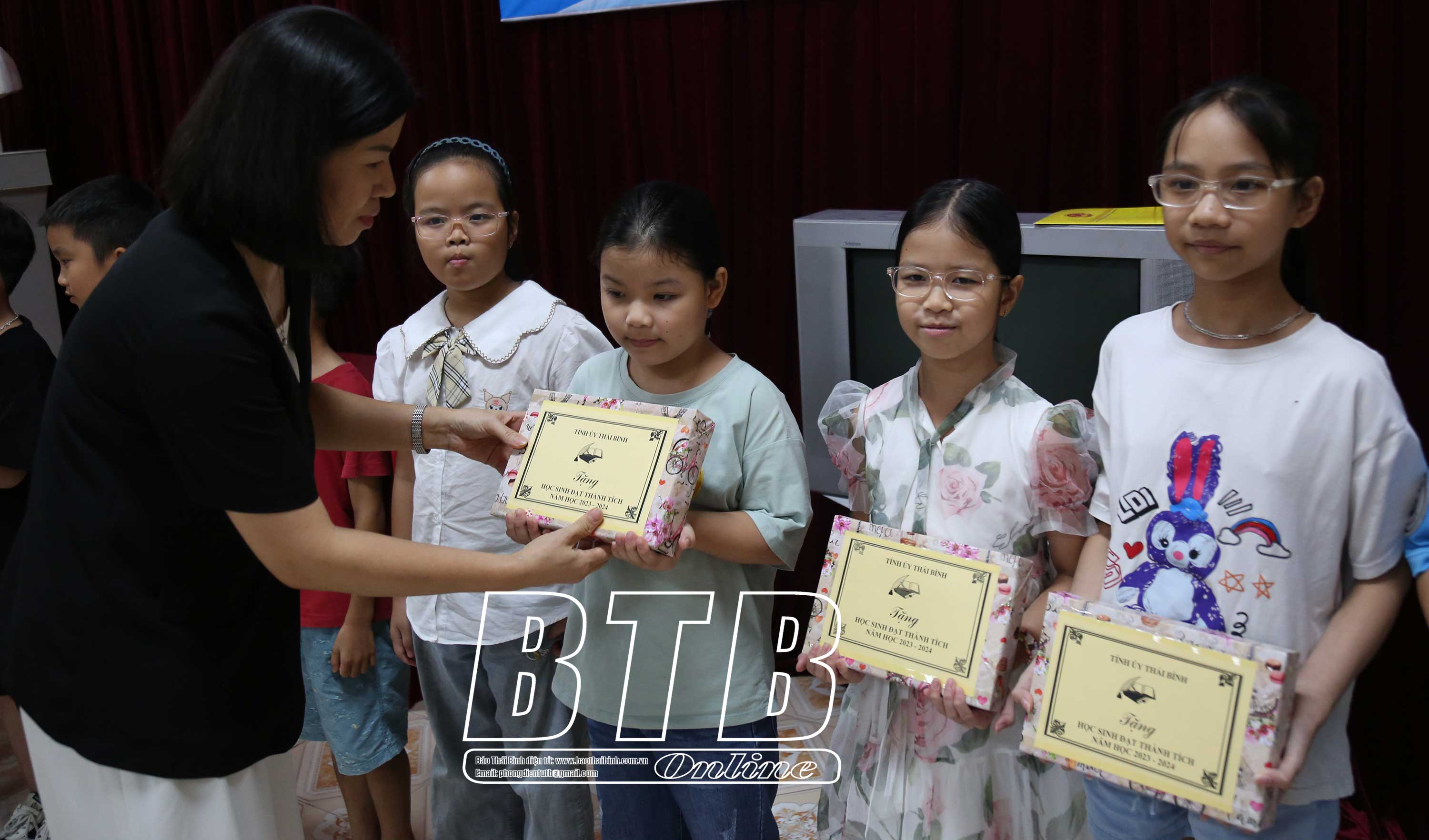 Tại buổi khen thưởng, lãnh đạo Báo Thái Bình đã tặng quà khen thưởng, động viên và mong các cháu tiếp tục phát huy kết quả học tập, tiếp tục nỗ lực cố gắng, đạt thành tích cao hơn trong năm học tới.