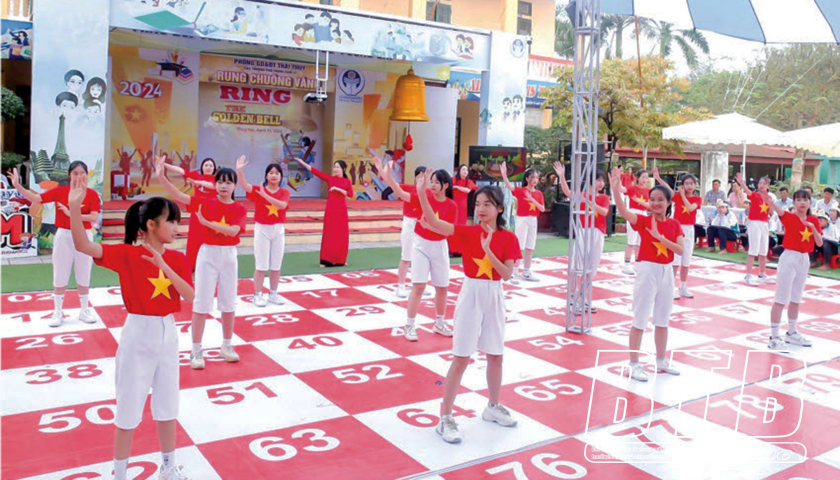 Học sinh các trường THCS, tiểu học và THCS cụm 3 (huyện Thái Thụy) tham gia cuộc thi rung chuông vàng bằng tiếng Anh.