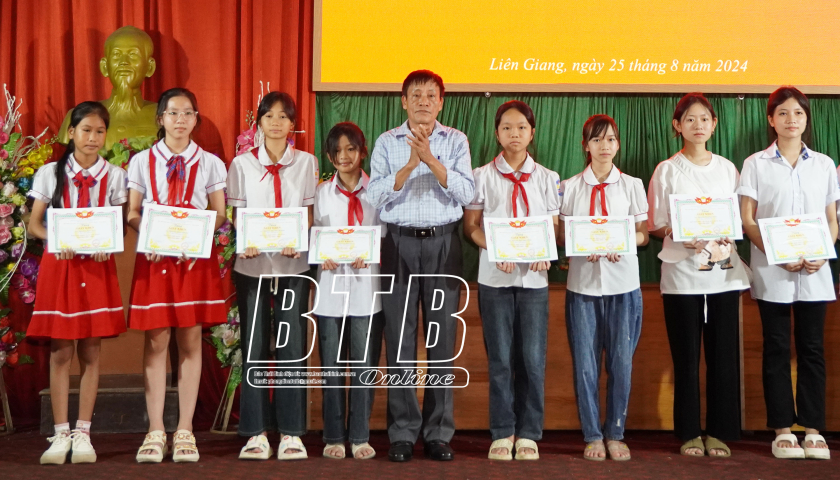 Hội Khuyến học xã Liên Giang (Đông Hưng) trao thưởng cho học sinh đạt thành tích cao.