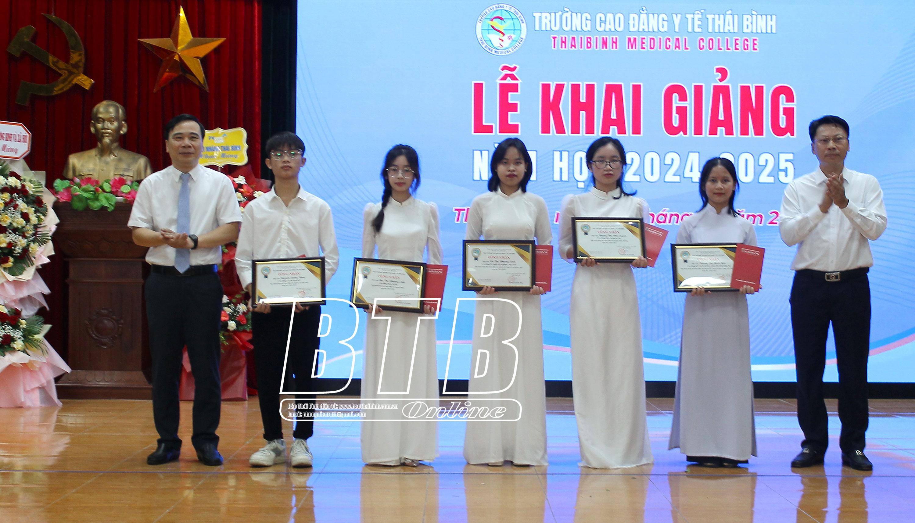 Tại buổi lễ, 6 tập thể, cá nhân tiêu biểu của Trường Cao đẳng Y tế Thái Bình được nhận bằng khen của UBND tỉnh. Lãnh đạo nhà trường trao thưởng cho 5 tân sinh viên thủ khoa đầu vào các ngành học; các đơn vị, doanh nghiệp trao tặng quỹ học bổng sinh viên nhà trường gần 60 triệu đồng.