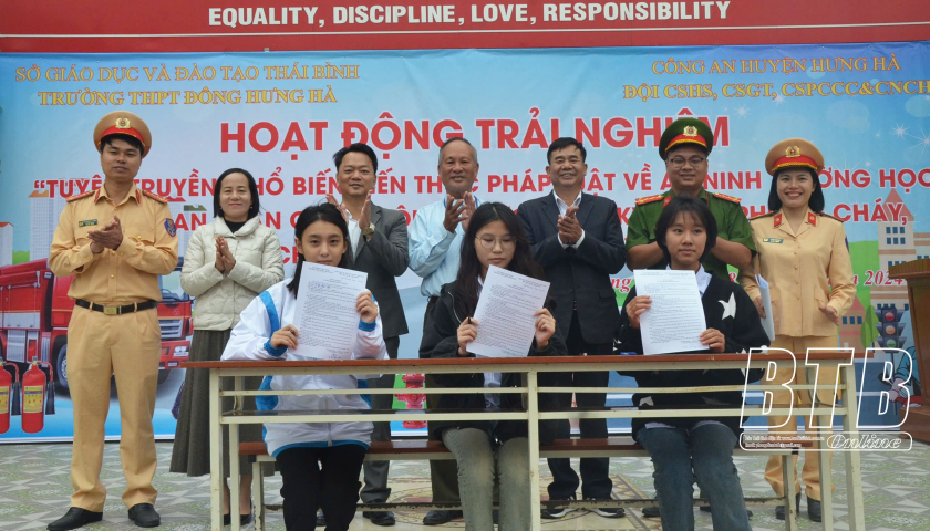 Tại buổi trải nghiệm, đại diện cán bộ, giáo viên và học sinh trong trường đã ký cam kết chấp hành nghiêm các quy định của pháp luật về bảo đảm an ninh trật tự, an toàn giao thông năm học 2024 - 2025.