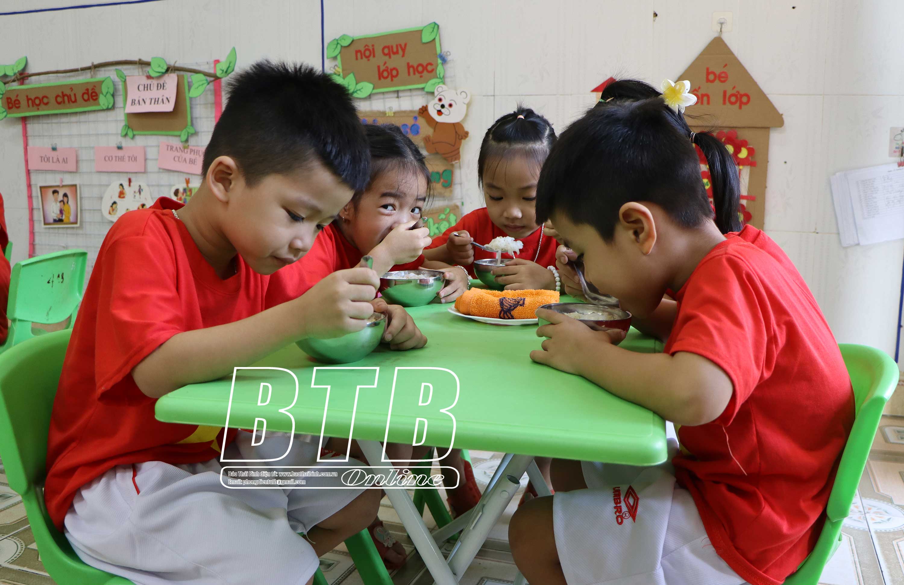 Bữa ăn phụ bảo đảm dinh dưỡng, an toàn cho trẻ ở Trường Mầm non Quang Trung.