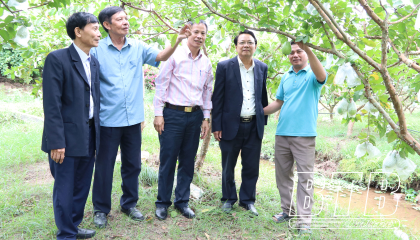 Hội khuyến học các cấp thăm mô hình kinh tế của công dân học tập tiêu biểu ở xã Vũ Hội.