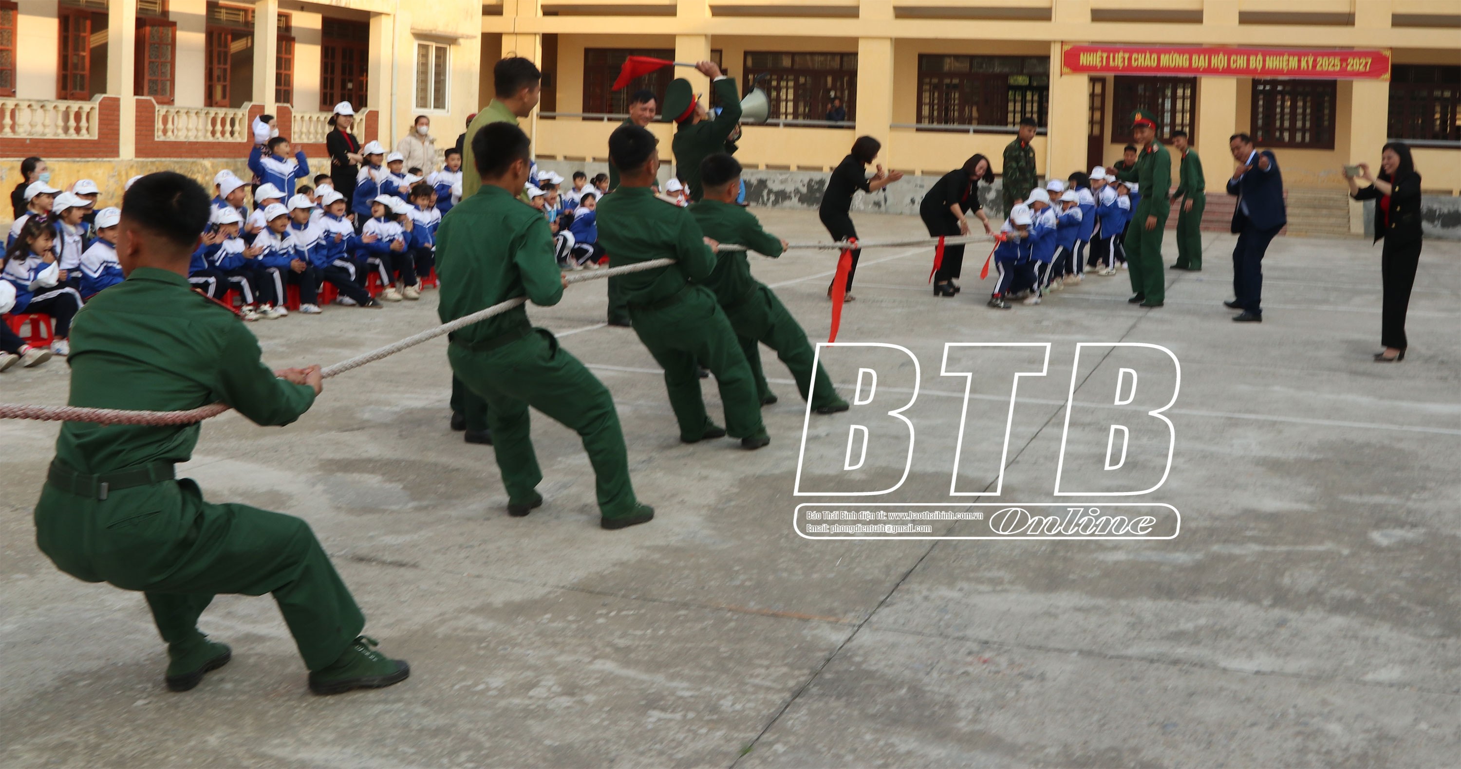 Giao lưu kéo co giữa học sinh Trường Tiểu học Đông Phong và chiến sĩ Trung đoàn Bộ Binh 568.