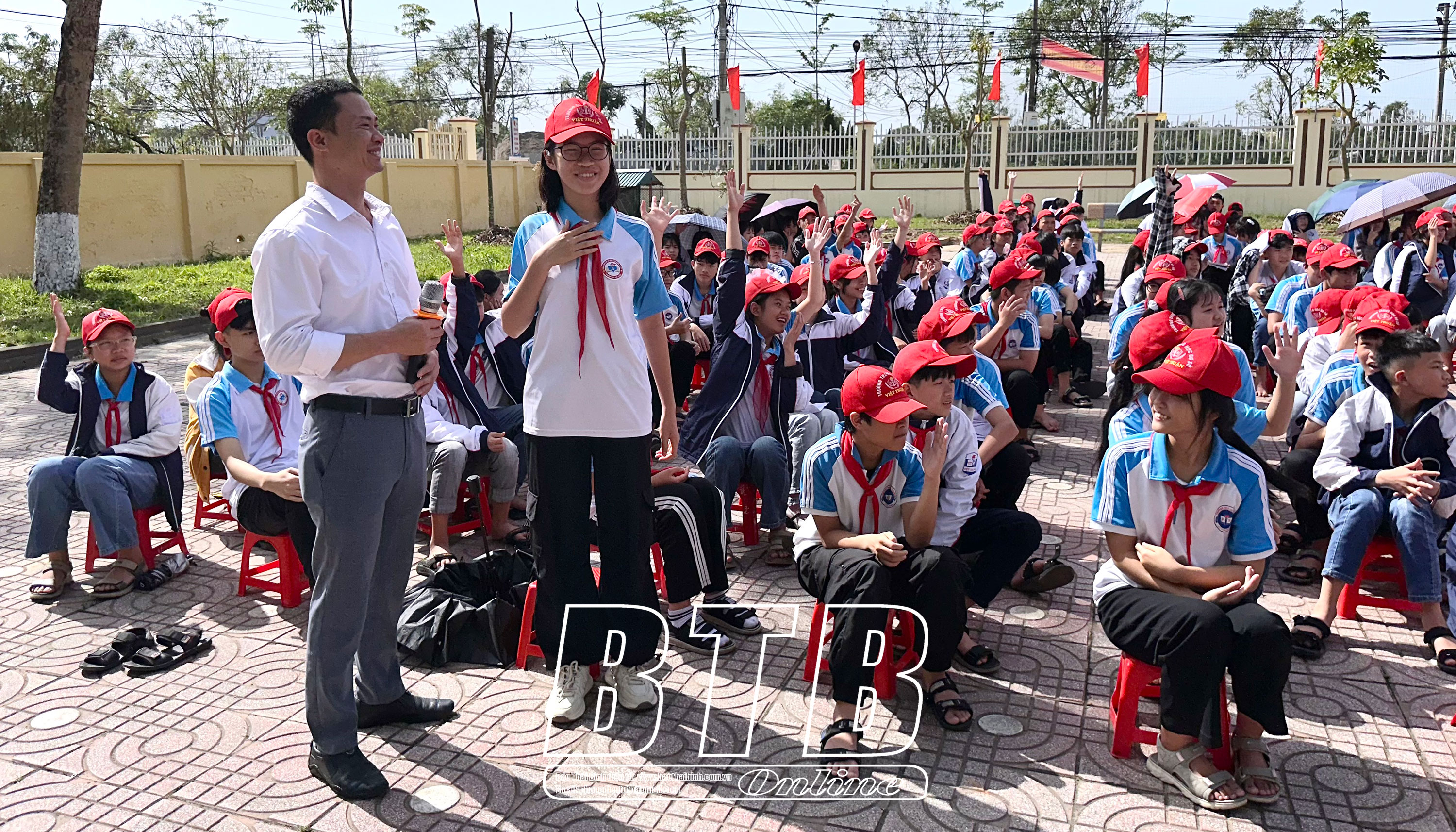 Học sinh hào hứng trả lời câu hỏi liên quan đến những dấu mốc lịch sử của đại thắng mùa Xuân năm 1975.