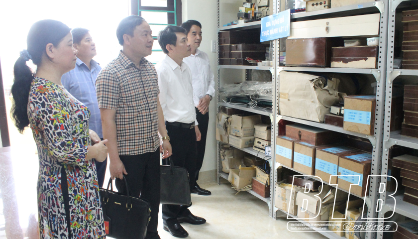 Đoàn giám sát tiến hành khảo sát hệ thống cơ sở vật chất tại Trường THPT Phạm Quang Thẩm.