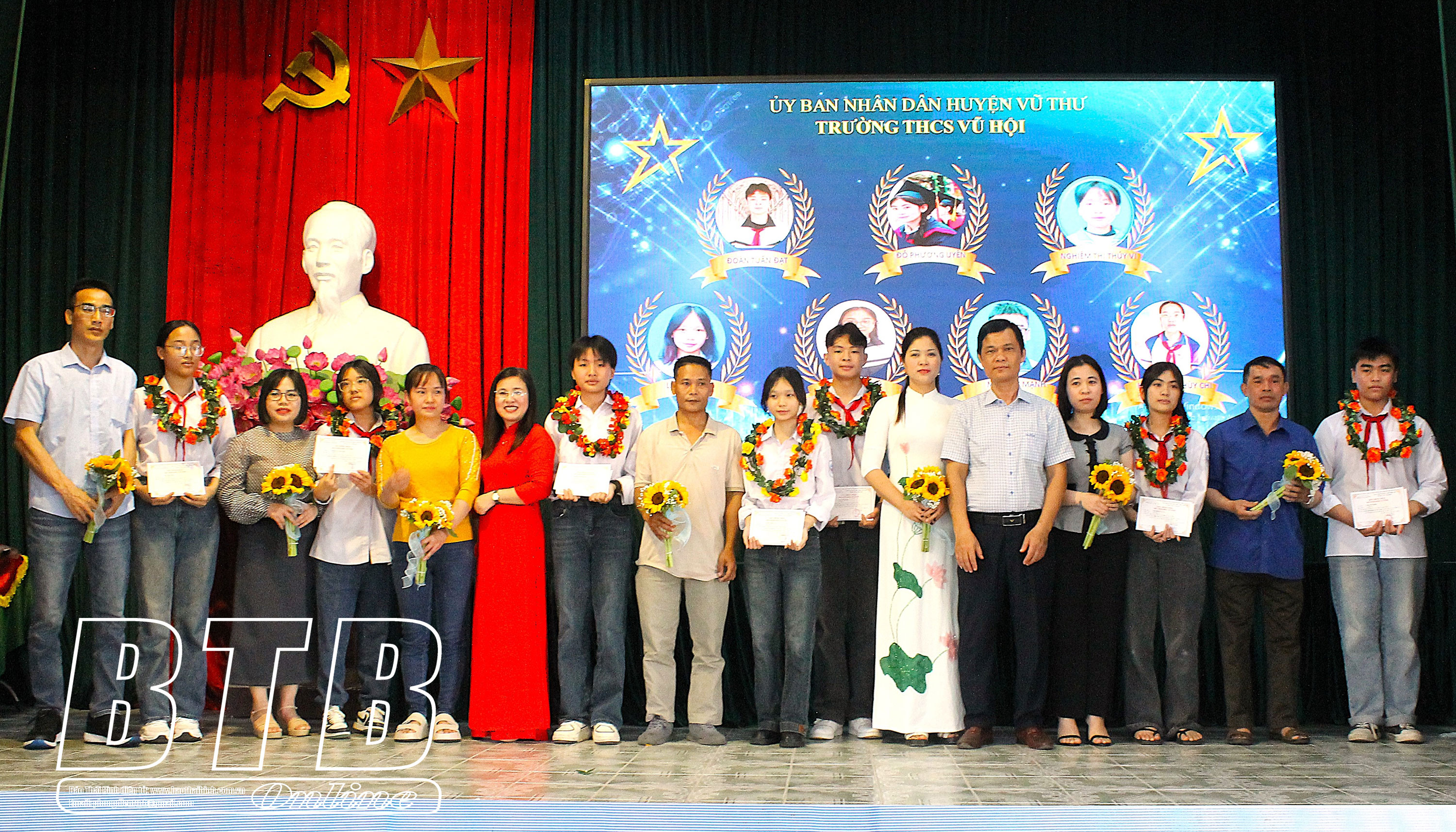 Nhân dịp này, Trường THCS Vũ Hội biểu dương, trao thưởng cho 9 giáo viên và 69 học sinh đạt thành tích xuất sắc các môn văn hóa, thể dục thể thao năm học 2024 - 2025. Thông qua đó góp phần khích lệ, động viên giáo viên, học sinh nỗ lực thi đua bồi dưỡng, học tập nhằm nâng cao thành tích học sinh giỏi của trường trong năm học tới.