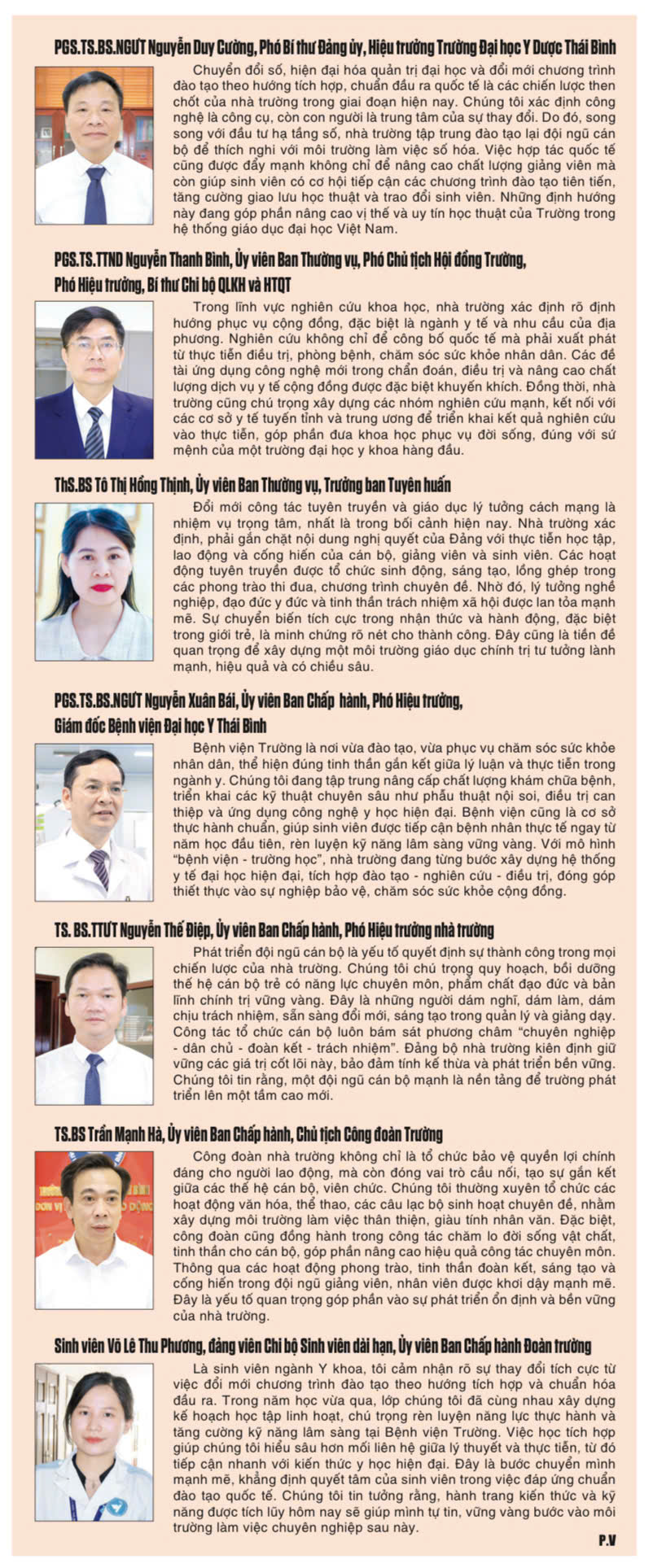Với sự lãnh đạo, chỉ đạo của Đảng ủy, Hội đồng trường, Ban Giám hiệu và sự ủng hộ, tạo điều kiện của cấp ủy, chính quyền các cấp cùng sự tin tưởng của cộng đồng xã hội, Trường Đại học Y Dược Thái Bình chắc chắn sẽ vươn mình mạnh mẽ, đóng góp quan trọng vào sự nghiệp phát triển y tế và giáo dục đại học của Việt Nam trong kỷ nguyên hội nhập và phát triển.