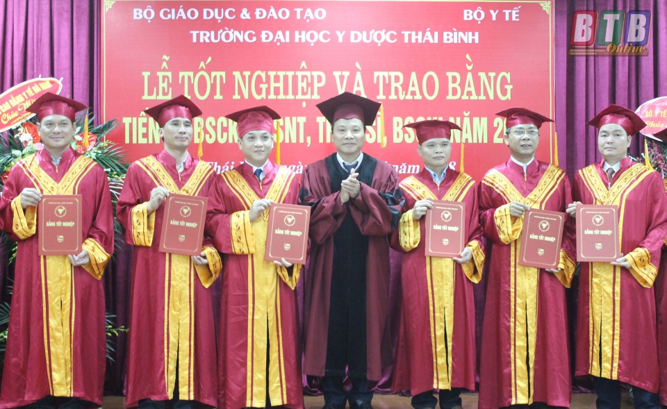 Cũng trong chiều ngày 15/5, Trường Đại học Y Dược Thái Bình tổ chức lễ tốt nghiệp và trao bằng tiến sĩ, bác sĩ chuyên khoa II, bác sĩ nội trú, thạc sĩ, bác sĩ chuyên khoa I năm 2017.