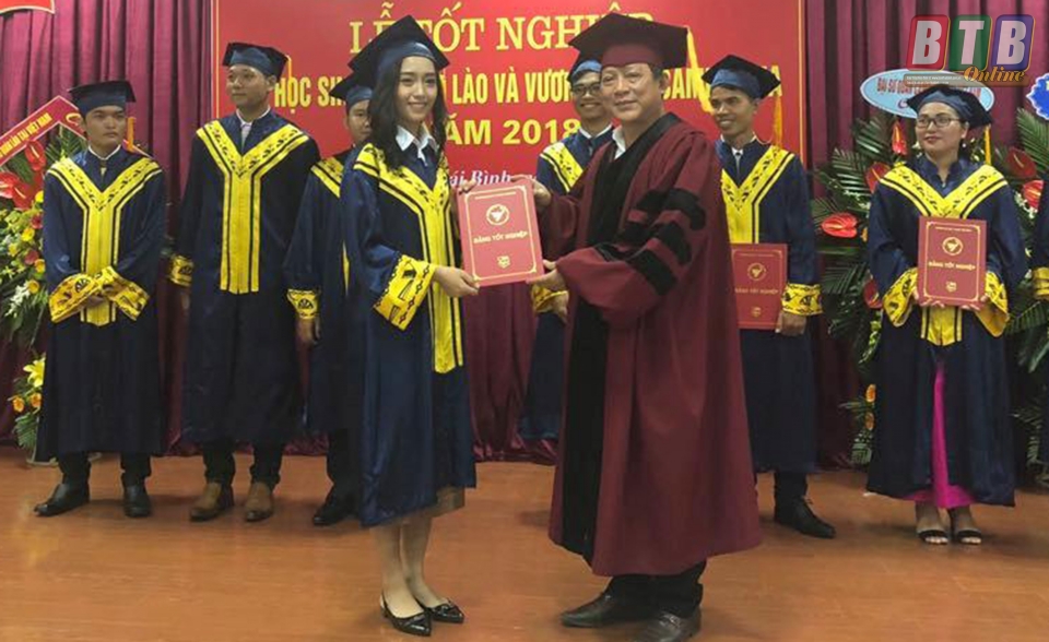 Đại diện Ban Giám hiệu Trường Đại học Y Dược Thái Bình trao bằng tốt nghiệp cho lưu học sinh.