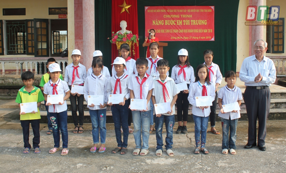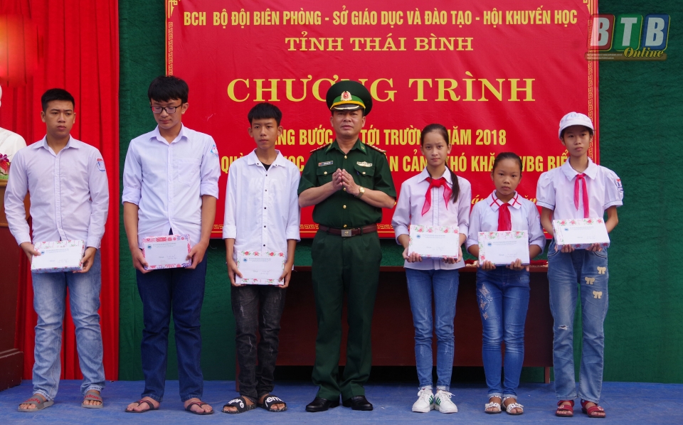 Tại chương trình, Bộ Chỉ huy BĐBP Thái Bình đã trao 15 suất quà (mỗi suất trị giá 4 triệu đồng) cho 15 em học sinh có hoàn cảnh khó khăn thuộc 14 xã khu vực biên giới biển, số tiền do cán bộ, chiến sĩ Bộ Chỉ huy BĐBP tự nguyện ủng hộ từ tiền lương. Hội  Khuyến học tỉnh đã trao tặng 30 suất quà (mỗi suất trị giá 300 ngàn đồng), Đồn Biên phòng trao 8 suất quà (mỗi suất trị giá 300 ngàn đồng) cho các em học sinh trên khu vực biên giới biển. Đây là những học sinh có hoàn cảnh đặc biệt khó khăn đã có nhiều cố gắng, đạt thành tích cao trong học tập.
