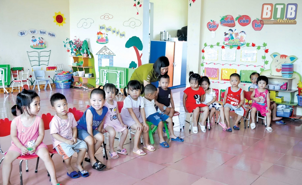 Cô và trò Trường Mầm non Thụy Chính (Thái Thụy).
