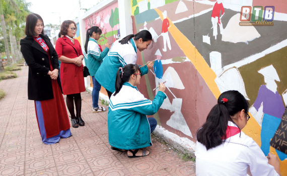 Thầy giáo Tô Quang Mạnh, giáo viên Mỹ thuật chia sẻ: Năm học này, kỷ niệm ngày Nhà giáo Việt Nam 20/11 và hướng tới kỷ niệm 50 năm thành lập huyện Thái Thụy, nhà trường phối hợp với tổ chức công đoàn phát động các hoạt động ngoại khóa như: tìm hiểu về thân thế, sự nghiệp của lãnh tụ Nguyễn Đức Cảnh, quê hương Thái Thụy, các hoạt động văn nghệ, thể thao..., trong đó nổi bật là các lớp tham gia vẽ tranh tường với chủ đề “Tình yêu quê hương”. Việc tổ chức vẽ tranh tường là hoạt động trải nghiệm, vận dụng kiến thức mỹ thuật vào thực tế, qua đó bộc lộ năng khiếu hội họa và khả năng vận dụng kiến thức đã học của các em vào thực tiễn cuộc sống, tạo nên những giá trị thẩm mỹ, làm cho không khí học tập thêm sôi động. Đồng thời, công trình cũng tạo cho cảnh quan nhà trường một diện mạo mới.