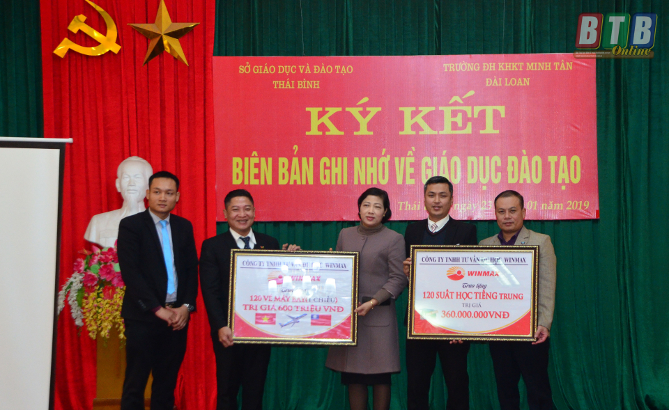 Nhân dịp này, Trường Đại học Khoa học Kỹ thuật Minh Tân đã trao tặng 120 suất học bổng tiếng Trung và 120 vé máy bay một chiều từ Việt Nam sang Đài Loan với tổng số tiền trị giá gần 1 tỷ đồng cho các em học sinh, sinh viên xuất sắc của Thái Bình.