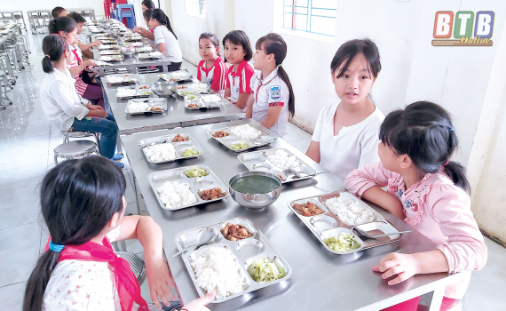 Ăn trưa của học sinh Trường Tiểu học Lê Danh Phương (Hưng Hà).