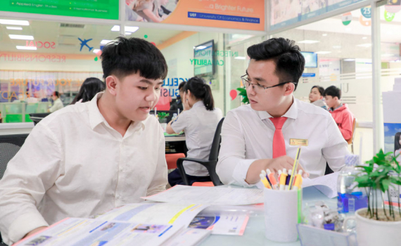 Thí sinh đến tìm hiểu ngành nghề tại Trường Đại học Kinh tế - Tài chính thành phố Hồ Chí Minh.