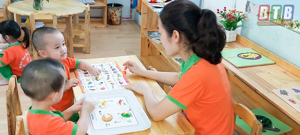 Tiết học Montessori của cô và trò Trường Mầm non Hoa Phượng (thành phố Thái Bình).