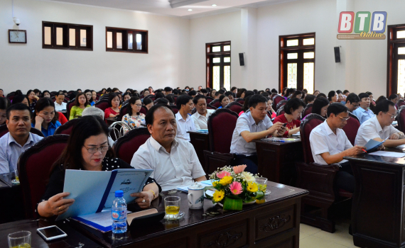 Phát biểu tại hội nghị, đồng chí Đỗ Đình An, Uỷ viên Ban Thường vụ Tỉnh uỷ, Bí thư Thành uỷ, Chủ tịch HĐND thành phố ghi nhận và đánh giá cao những thành tích của ngành Giáo dục và Đào tạo thành phố đã đạt được trong những năm học qua, đặc biệt trong năm học 2018 - 2019. Đồng chí mong muốn trong năm học mới 2019 - 2020, ngành Giáo dục và Đào tạo thành phố tiếp tục tăng cường kỷ cương, nền nếp, triển khai đồng bộ các giải pháp đổi mới, chỉ đạo quyết liệt các hoạt động giáo dục, nâng cao chất lượng giáo dục bằng việc kết hợp song song dạy chữ với dạy người. Phát động cán bộ, giáo viên tích cực hưởng ứng thực hiện các cuộc vận động, các phong trào thi đua, giữ vững vị trí dẫn đầu trong phong trào giáo dục toàn tỉnh.