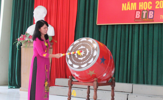 Lãnh đạo nhà trường đánh trống khai giảng năm học mới 2019 – 2020.
