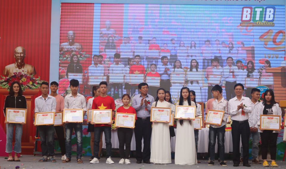 Tại buổi lễ, 66 học sinh đạt thành tích cao trong học tập và học sinh có hoàn cảnh khó khăn được Sở Lao động - Thương binh và Xã hội tuyên dương, khen thưởng.