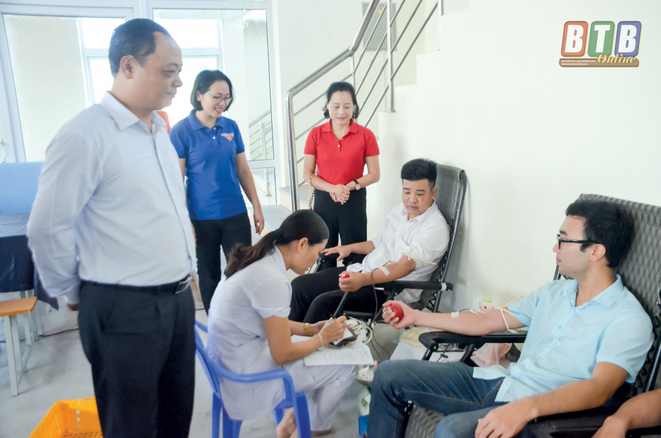 Cán bộ, giáo viên, học sinh, sinh viên nhà trường tham gia hiến máu tình nguyện.