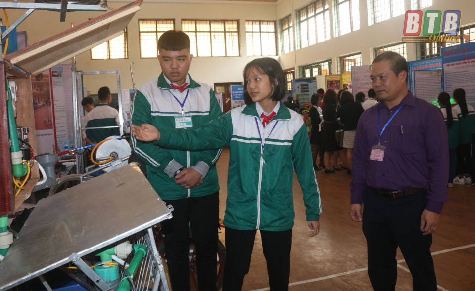Đồng chí Nguyễn Thị Lĩnh, Tỉnh ủy viên, Phó Chủ tịch UBND tỉnh tham quan các sản phẩm sáng tạo của học sinh.