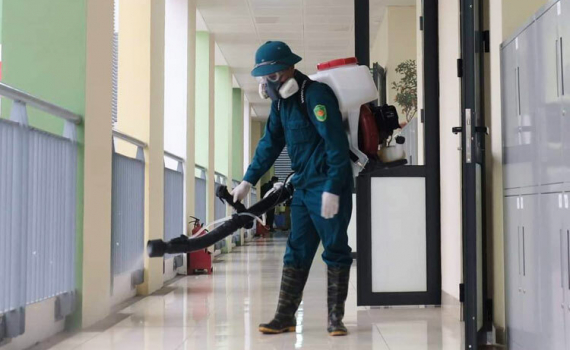 Vệ sinh phòng dịch, phun thuốc khử trùng tại các trường học. Ảnh minh họa.