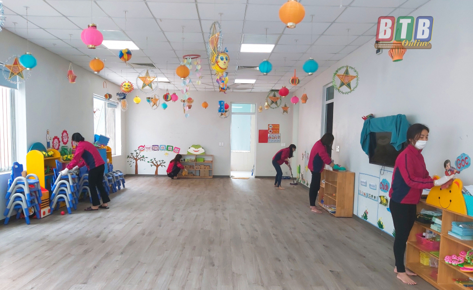 Cũng giống như các trường công lập, trong những ngày học sinh nghỉ học dài ngày, các cô giáo của Trường Mầm non Sunflower (thành phố Thái Bình) vẫn đến trường tham gia vệ sinh trường, lớp và sinh hoạt chuyên môn. Để bảo đảm đời sống cho giáo viên, nhân viên nhà trường trong đợt nghỉ học dài ngày, Trường Mầm non Sunflower đã tổ chức nhiều cuộc họp để đưa ra những phương án hỗ trợ giáo viên. Cô giáo Nguyễn Thị Mỵ, Hiệu trưởng Trường Mầm non Sunflower chia sẻ: Trong thời gian học sinh nghỉ học kéo dài khiến nhà trường khó khăn bởi không có nguồn thu thì cũng khó để trả lương cho 57 cán bộ, giáo viên và nhân viên. Để khắc phục tình trạng này, nhà trường đã trừ những ngày nghỉ vào 12 ngày nghỉ phép năm và trả lương cán bộ, giáo viên, nhân viên. Bên cạnh đó, một tuần nhà trường sẽ có 3-4 ngày tổng vệ sinh và sinh hoạt chuyên môn, giáo viên sẽ được nhận lương như những ngày đi làm bình thường. Ngoài ra, các chế độ bảo hiểm y tế, bảo hiểm xã hội sẽ được nhà trường thực hiện đầy đủ theo đúng Bộ luật Lao động. Qua đó, góp phần bảo đảm đời sống cho cán bộ, giáo viên và nhân viên.
