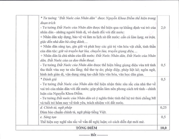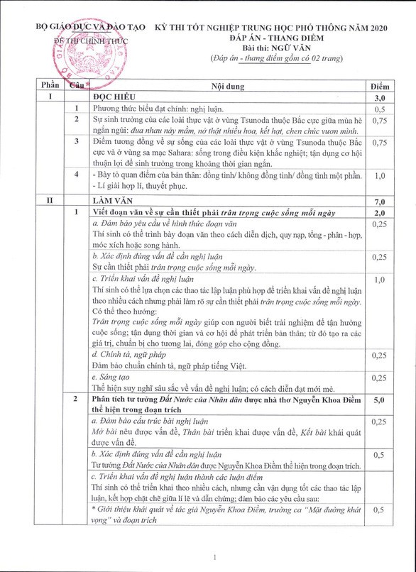 Thang điểm chính thức môn Ngữ Văn thi tốt nghiệp THPT 2020