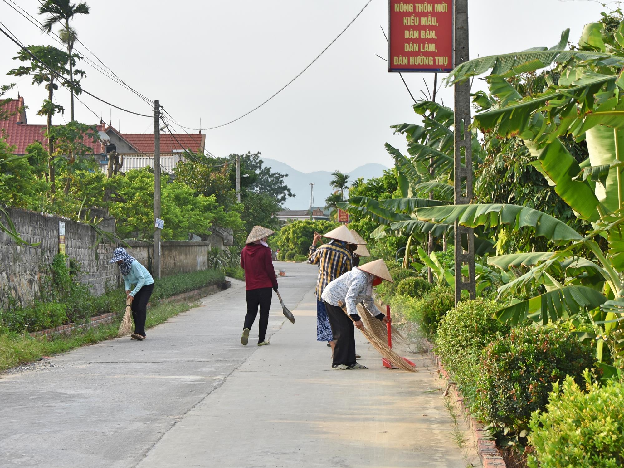Người dân thôn Phúc Thị, xã Việt Dân (TX Đông Triều) tham gia dọn dẹp vệ sinh môi trường.