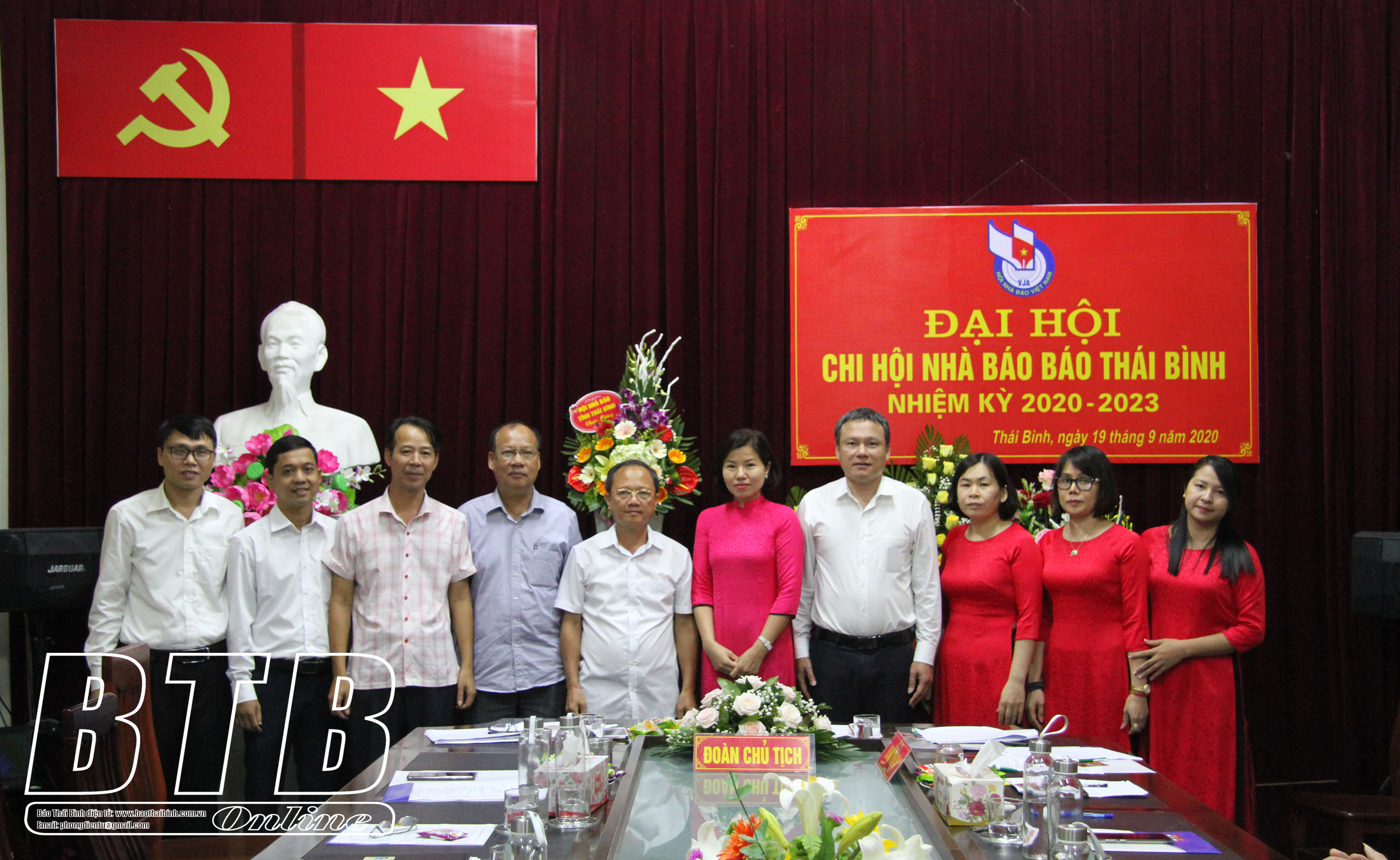 Các đồng chí lãnh đạo Hội Nhà báo Thái Bình, Báo Thái Bình chụp ảnh lưu niệm với Ban Thư ký chi hội nhiệm kỳ 2020 – 2023.
