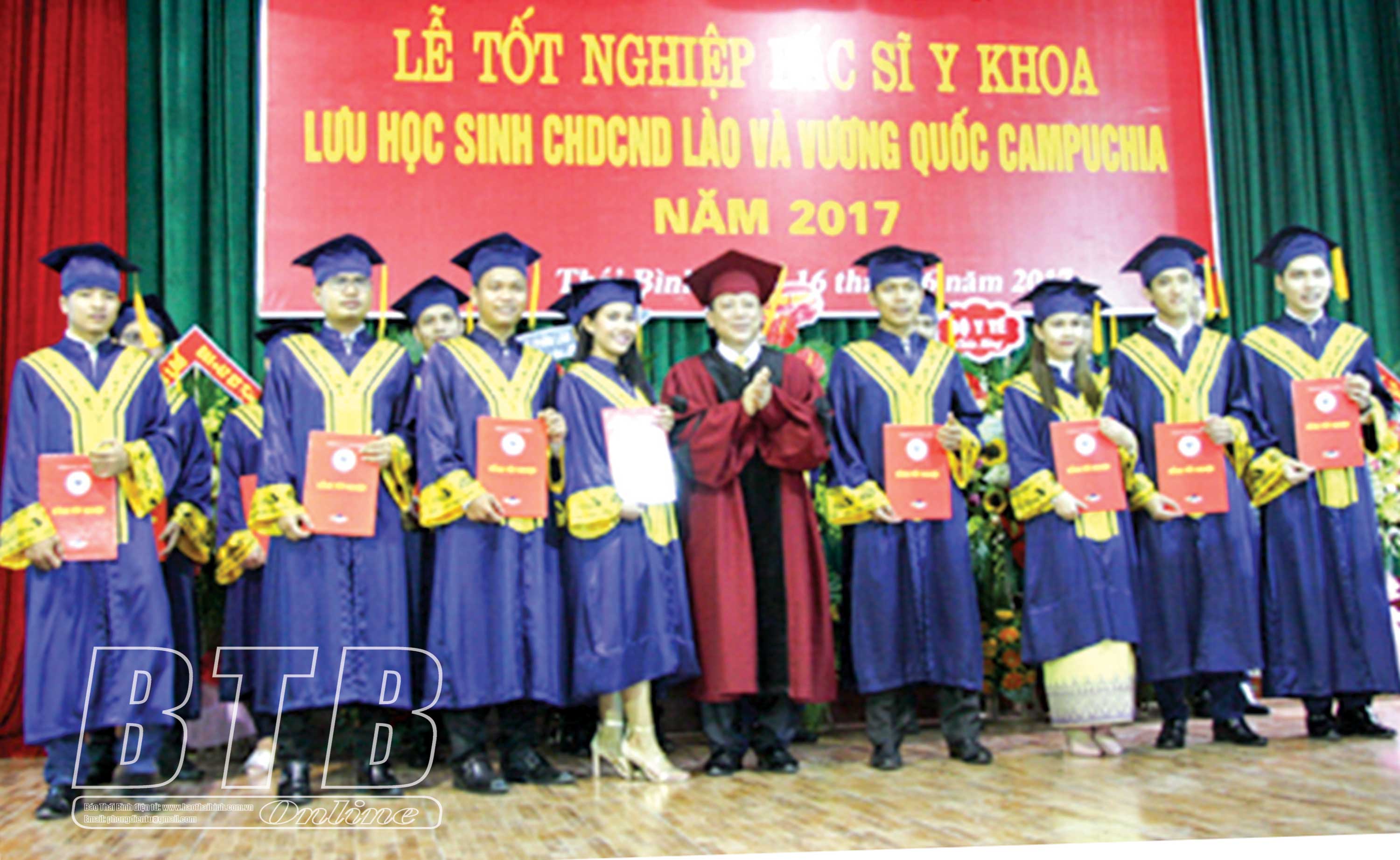 Trường Đại học Y Dược Thái Bình trao bằng tốt nghiệp cho các lưu học sinh Lào.