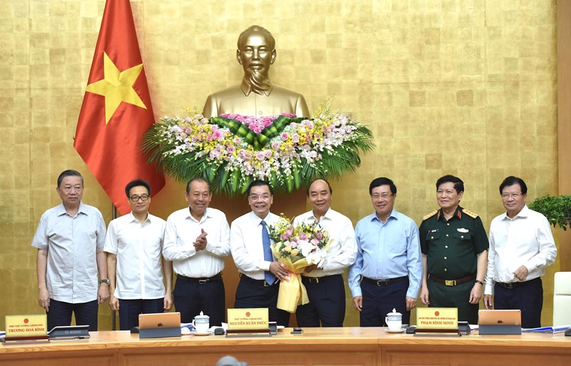 * Trước phiên họp, Thủ tướng Nguyễn Xuân Phúc đã tặng hoa và chúc mừng Bộ trưởng Khoa học và Công nghệ (KHCN) Chu Ngọc Anh đảm nhiệm trọng trách mới, làm Chủ tịch UBND TP Hà Nội.