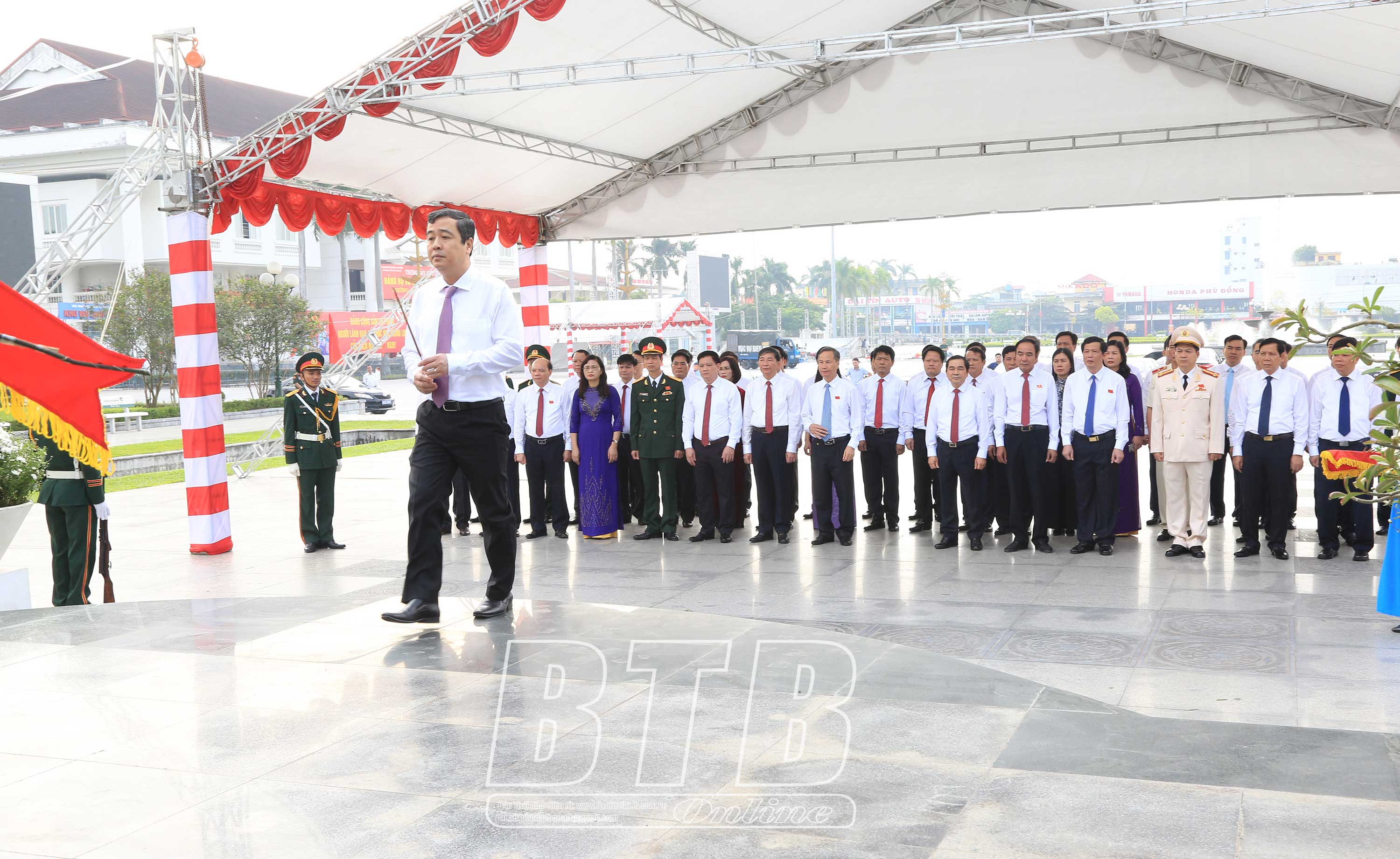 Dự lễ viếng và dâng hương có các đồng chí: Ngô Đông Hải, Ủy viên dự khuyết Trung ương Đảng, Bí thư Tỉnh ủy; Nguyễn Tiến Thành, Phó Bí thư thường trực Tỉnh ủy, Chủ tịch HĐND tỉnh; Nguyễn Khắc Thận, Tỉnh ủy viên, Phó Chủ tịch thường trực phụ trách, điều hành hoạt động UBND tỉnh; các đồng chí Ủy viên Ban Thường vụ Tỉnh ủy, Thường trực HĐND, lãnh đạo UBND, Ủy ban MTTQ tỉnh; đại diện lãnh đạo các sở, ban, ngành, cơ quan, đơn vị của tỉnh và các huyện, thành phố.