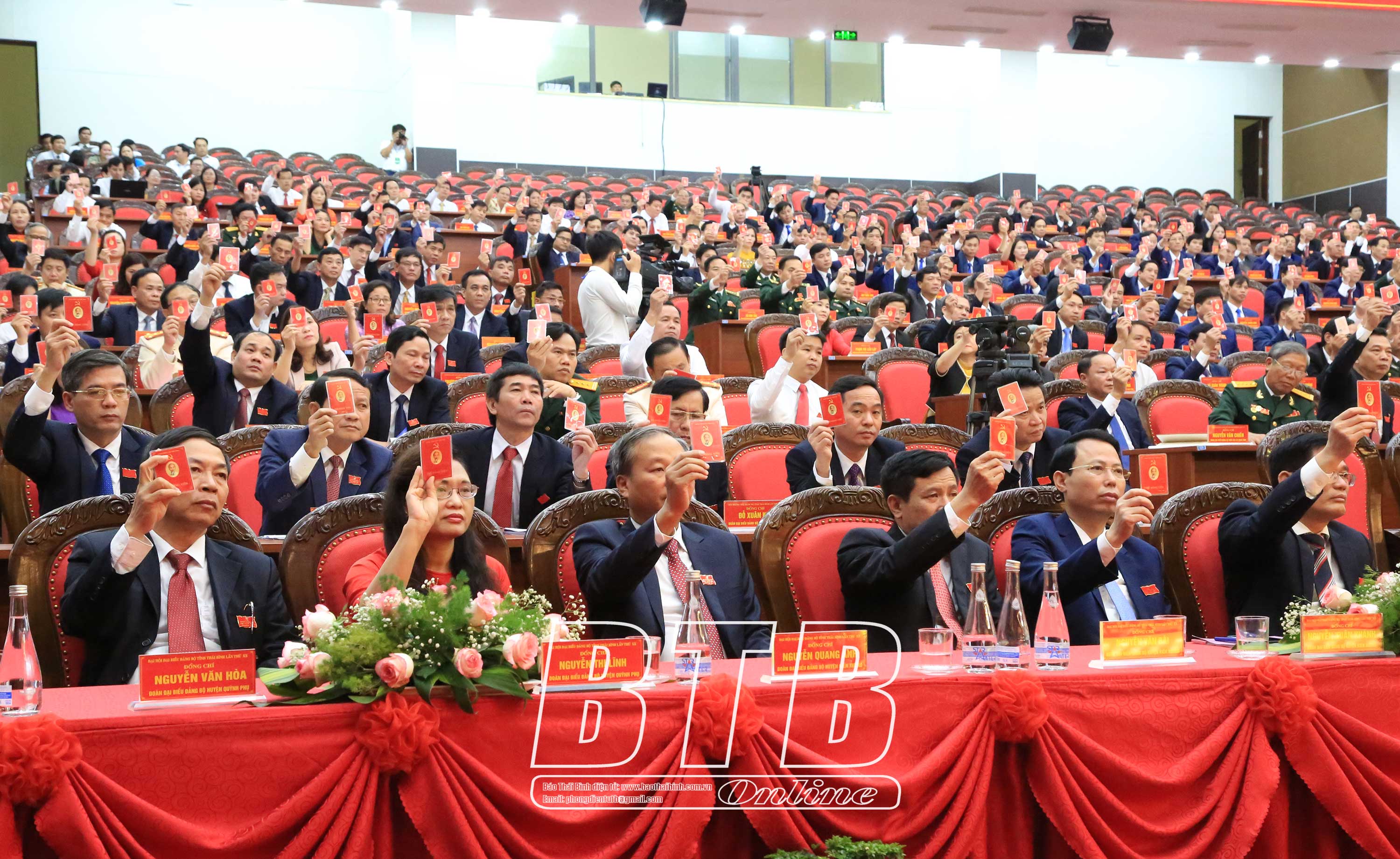 Đại biểu biểu quyết thông qua danh sách nhân sự để bầu vào Ban Chấp hành Đảng bộ tỉnh khóa XX.