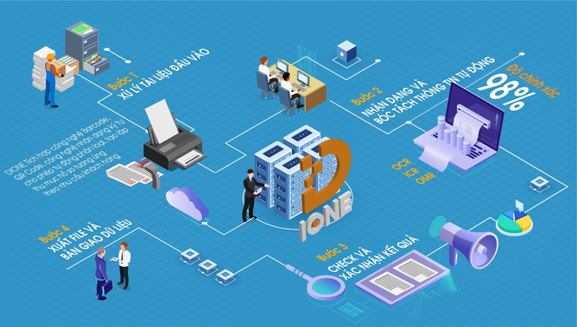 Công nghệ nhận dạng và bóc tách thông tin tự động IONE, nhận dạng chữ viết tay H-IONE, cho phép trích xuất thông tin tự động không giới hạn form biểu mẫu, không giới hạn loại tài liệu như: hồ sơ văn bản, giản đồ, ảnh, chứng minh thư, sổ đỏ... Đồng thời, tích hợp các công nghệ 4.0 như cơ chế học máy Machine learning, học sâu Deep learning, AI... giúp quá trình tạo lập cơ sở dữ liệu lớn trở nên nhanh chóng, chính xác, tiết kiệm thời gian và chi phí.