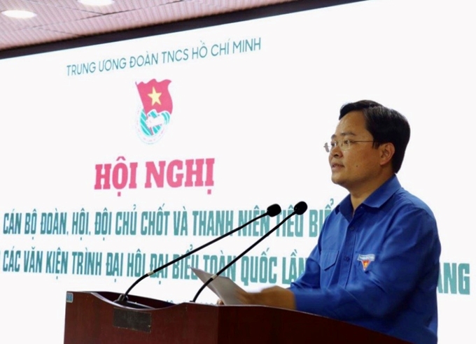 Bí thư thường trực Trung ương Đoàn, Chủ tịch Hội LHTN Việt Nam Nguyễn Anh Tuấn phát biểu
