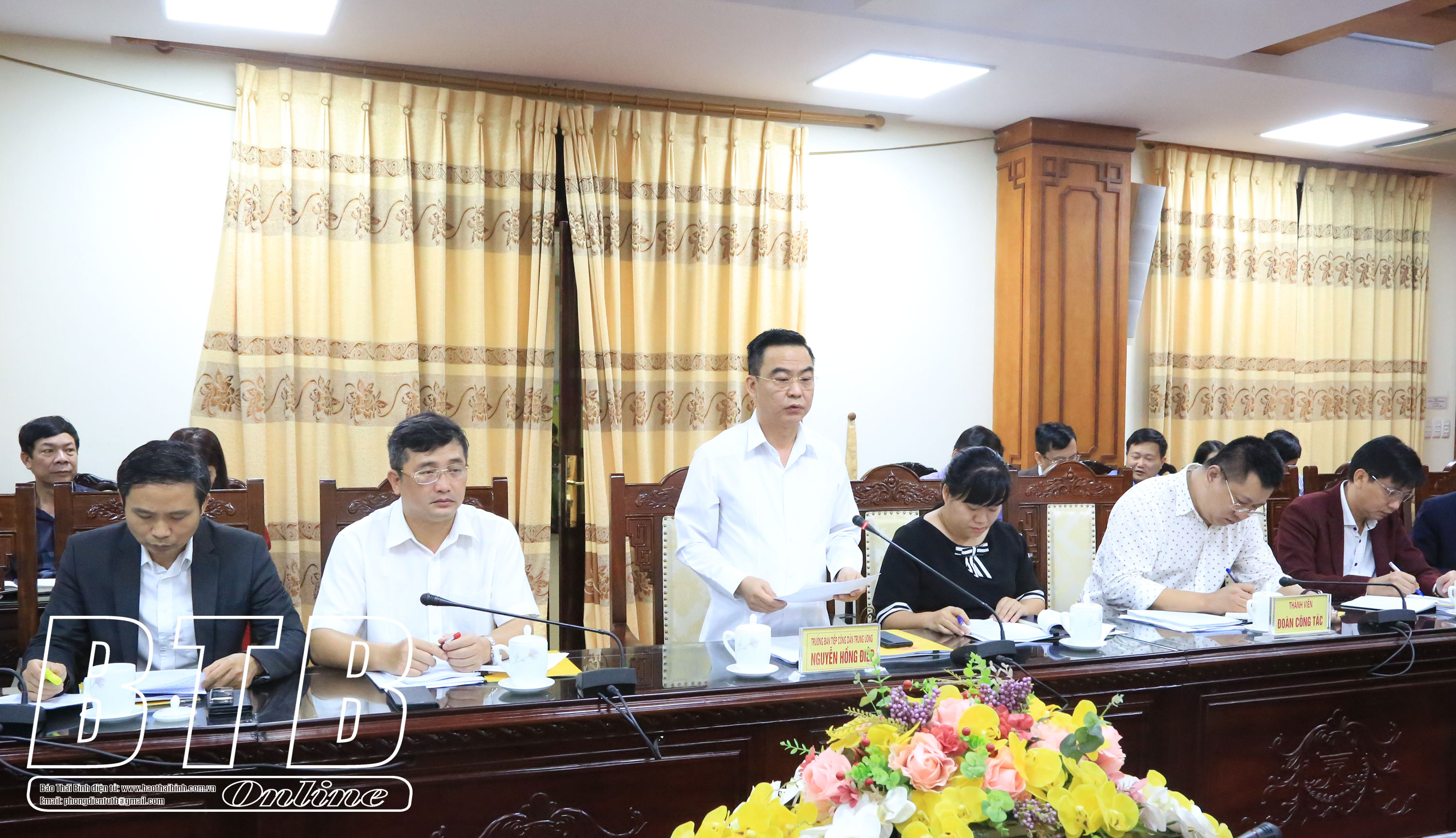 Đồng chí Nguyễn Khắc Thận, Phó Bí thư Tỉnh ủy, Phó Chủ tịch thường trực, phụ trách điều hành hoạt động UBND tỉnh; lãnh đạo các sở, ngành, UBND các huyện, thành phố tiếp và làm việc với tổ công tác.