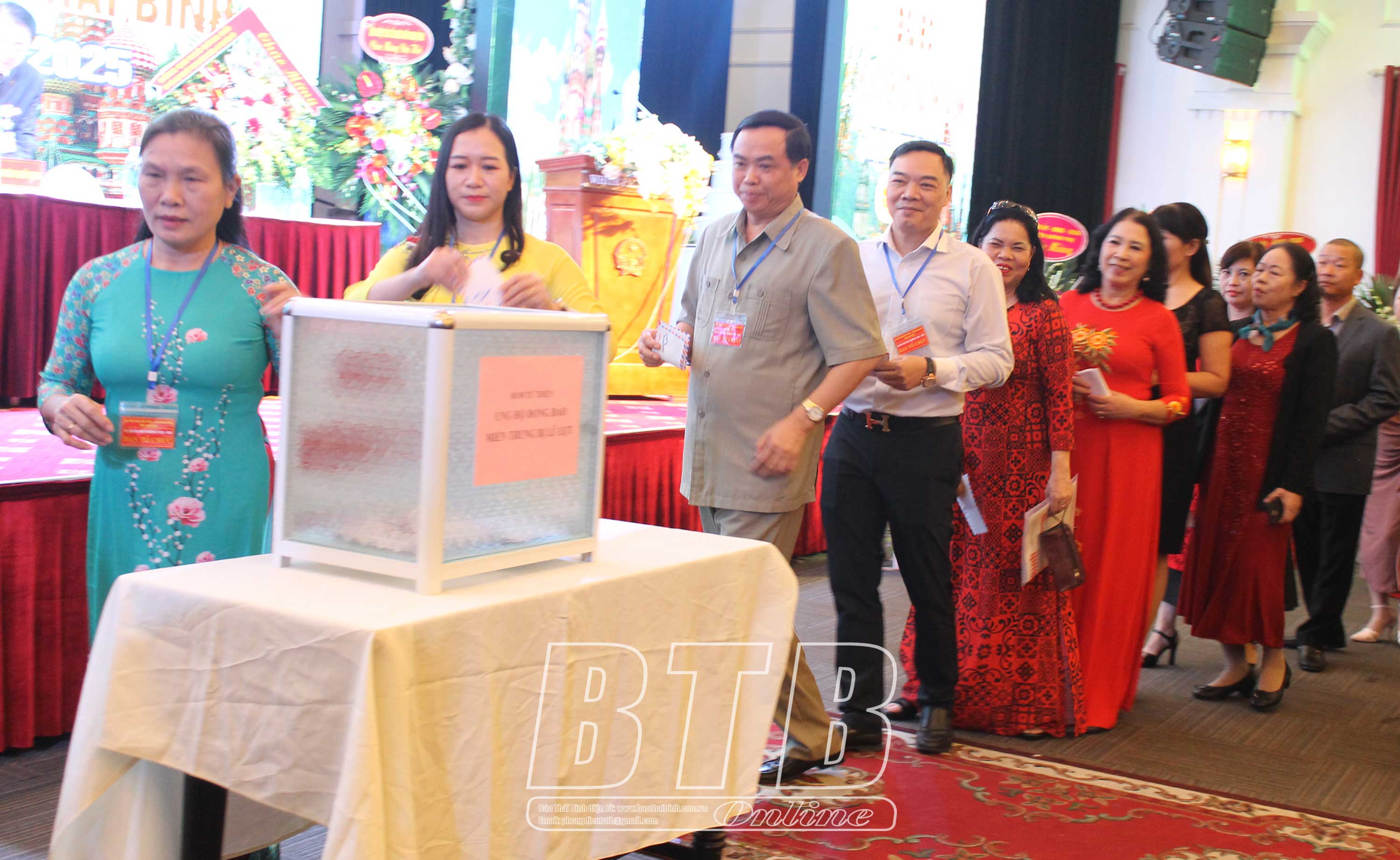 Hội viên Hội Hữu nghị Việt Nam - Liên bang Nga tỉnh Thái Bình và đại biểu dự đại hội tham gia ủng hộ đồng bào miền Trung bị bão, lụt.