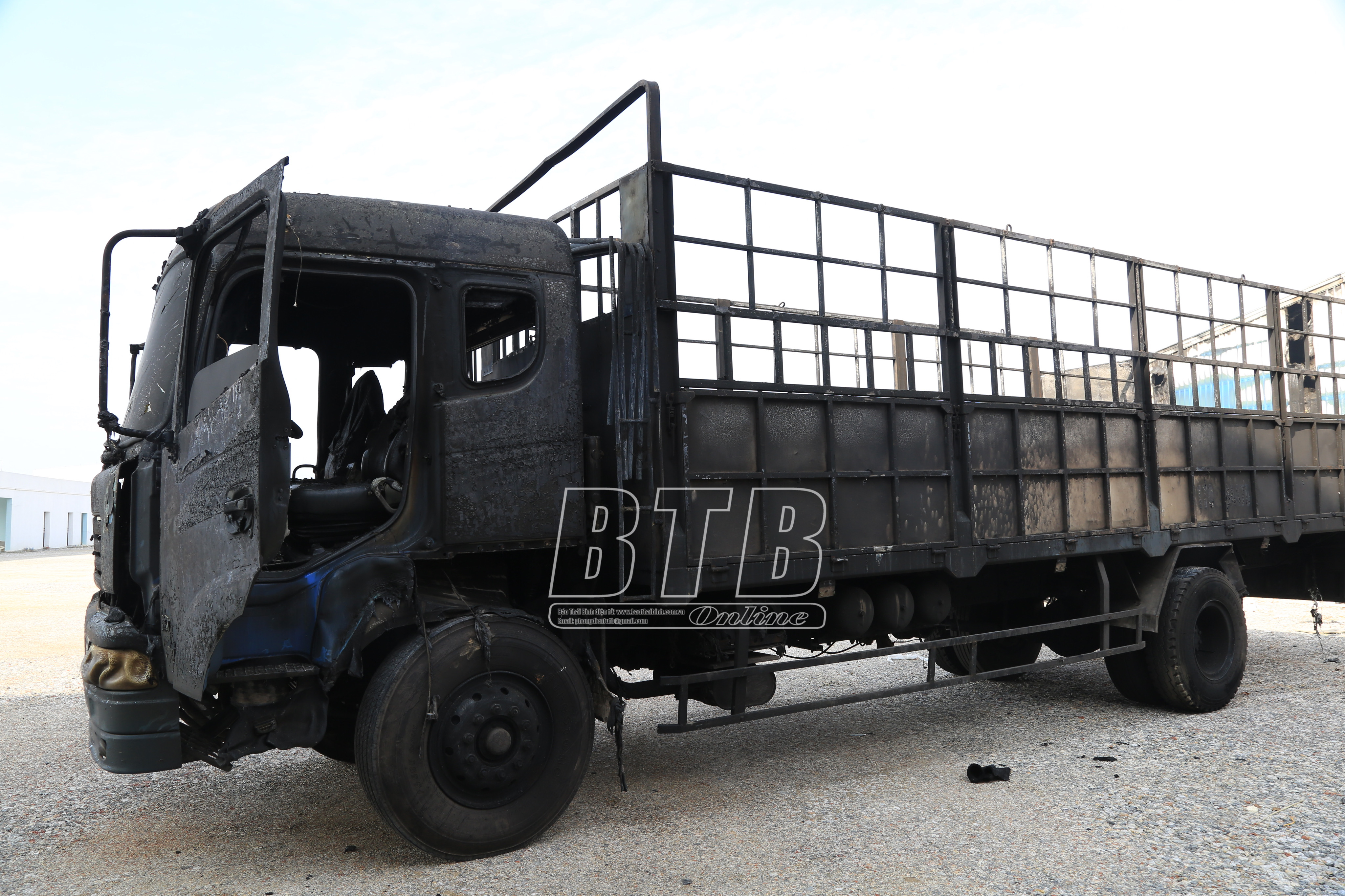 Xe tải chở hàng bị đám cháy thiêu rụi.