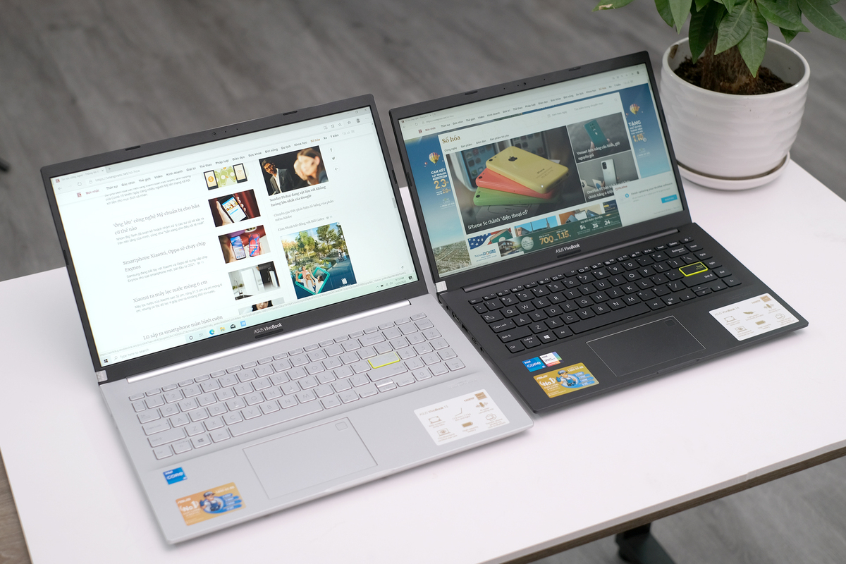 Vivobook S14 A415 và S15 A515 là những laptop Asus đầu tiên trang bị chip xử lý Intel Core i thế hệ thứ 11 với mức giá tầm trung - từ 12,9 triệu đồng. Cả hai đều tích hợp chip đồ họa Intel Iris X thế hệ mới, sử dụng ổ SSD chuẩn PCIe, Wi-Fi 6, loa Harman Kardon và cảm biến vân tay một chạm.