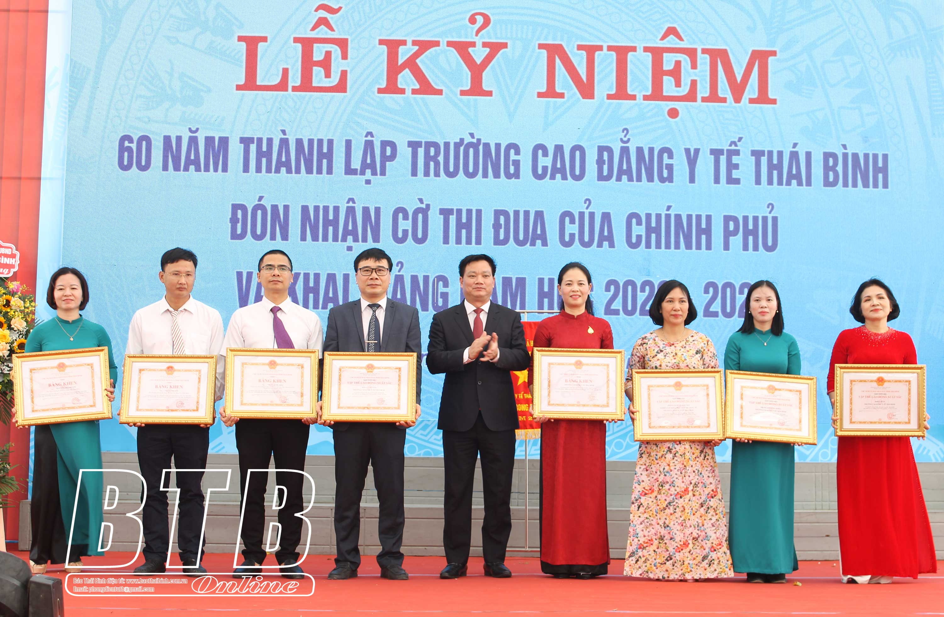 Tại buổi lễ, thừa ủy quyền của Thủ tướng Chính phủ, đồng chí Ngô Đông Hải, Uỷ viên dự khuyết Ban Chấp hành Trung ương Đảng, Bí thư Tỉnh uỷ đã trao tặng Cờ thi đua của Chính phủ “đơn vị xuất sắc trong phong trào thi đua năm 2019” cho Trường Cao đẳng Y tế Thái Bình. Đồng chí Nguyễn Khắc Thận, Phó Bí thư Tỉnh ủy, Phó Chủ tịch thường trực, phụ trách điều hành hoạt động của UBND tỉnh trao bằng khen của UBND tỉnh, danh hiệu chiến sĩ thi đua cấp tỉnh cho 8 tập thể, cá nhân.
