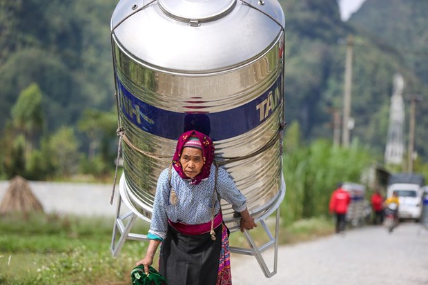 Ở những xã miền núi Hà Giang, nước sinh hoạt luôn là một điều khá xa xỉ. Mỗi ngày, người dân phải mất 3-4 tiếng leo đồi để cõng nước về nhà, mỗi lần cũng chỉ mang được một can nước 20 lít. Mùa khô kéo dài từ tháng 9 đến tháng 4 hằng năm là thời điểm bà con cõng nước rất vất vả.