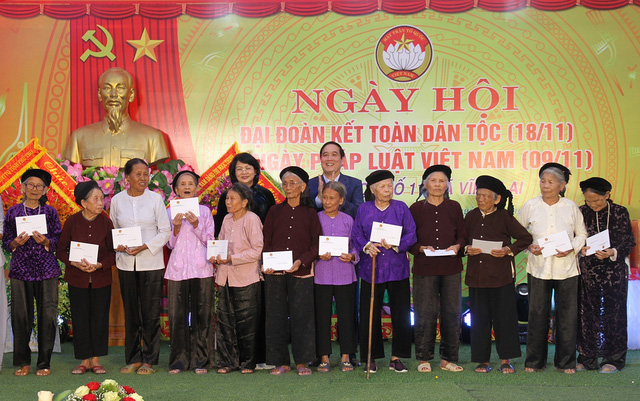 Cùng ngày, Phó Chủ tịch nước Đặng Thị Ngọc Thịnh đã đến dự và chung vui ngày hội Đại đoàn kết toàn dân tộc với nhân dân khu 11, xã Vĩnh Lại, huyện Lâm Thao.