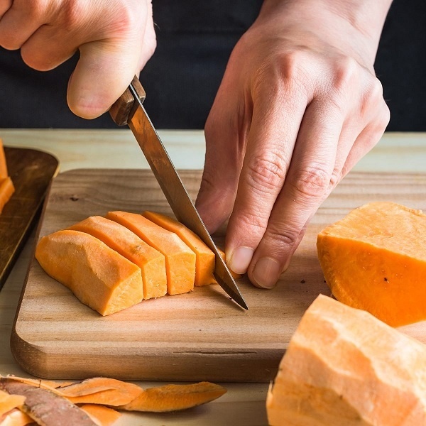 Cắt khoai lang trước là một cách giúp bạn nấu ăn nhanh hơn. Bạn hoàn toàn có thể cắt khoai lang trước một hai ngày nhưng nhớ đặt khoai lang trong nước rồi cho vào tủ lạnh. Nếu không, khoai lang sẽ khô rất nhanh và không ngon như khi vừa mới cắt.