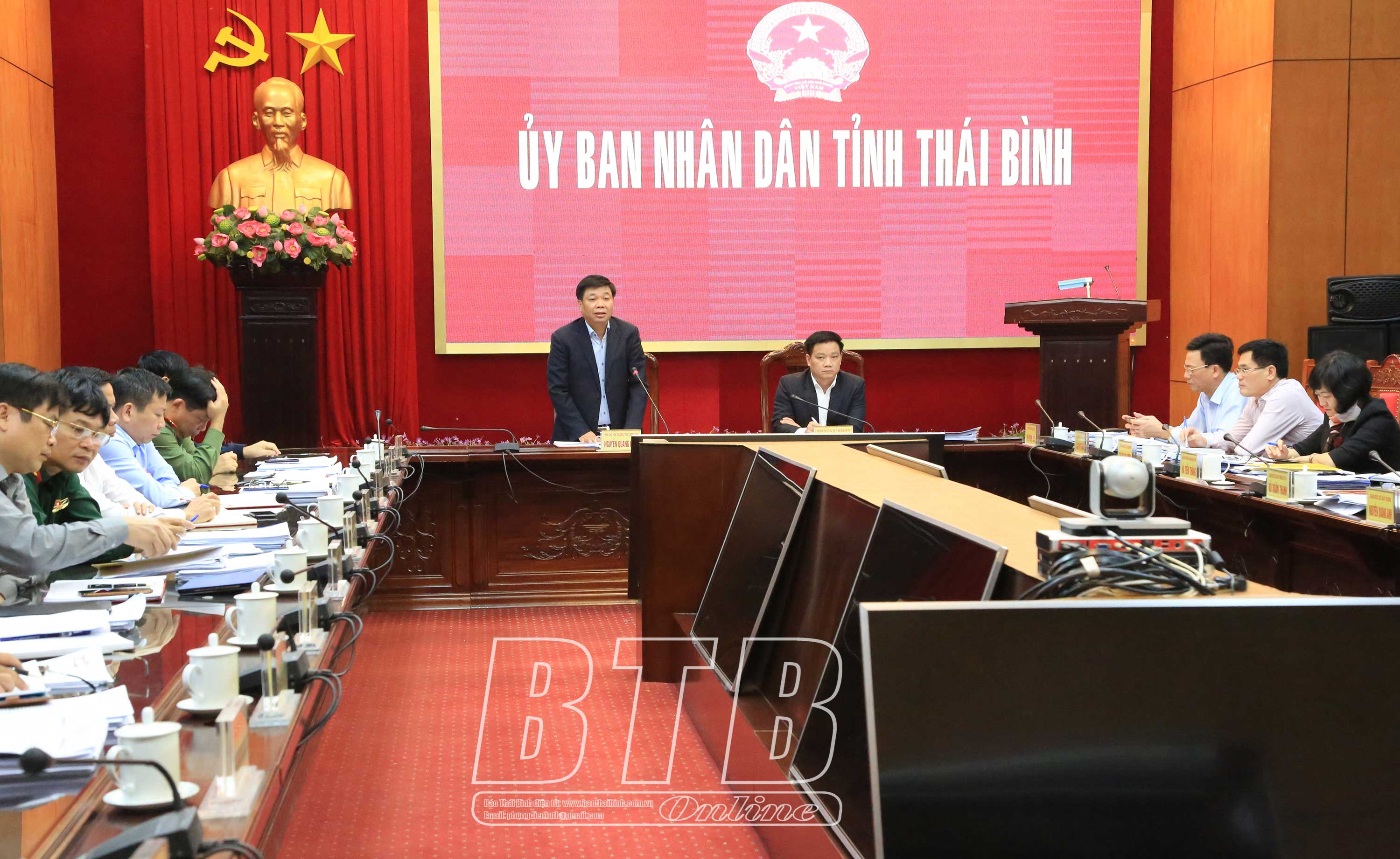 Đánh giá về tình hình phát triển kinh tế - xã hội năm 2020, đồng chí Phó Bí thư Tỉnh ủy, Chủ tịch UBND tỉnh nhấn mạnh mặc dù tốc độ tăng trưởng tổng sản phẩm trên địa bàn GRDP chưa đạt kế hoạch đề ra nhưng đã thể hiện sự cố gắng, nỗ lực của các cấp, ngành, địa phương, cộng đồng doanh nghiệp và nhân dân trong tỉnh. Đồng chí yêu cầu từ nay đến cuối năm và trong năm 2021, các cấp, ngành, địa phương cần nỗ lực và quyết tâm cao nhất nhằm thực hiện mục tiêu đã đề ra, trong đó nhiệm vụ quan trọng hàng đầu đó là tiếp tục tập trung và quyết tâm cao độ thực hiện các giải pháp của Chính phủ và của tỉnh trong phòng, chống dịch Covid-19; phát triển mạnh mẽ sản xuất nông nghiệp và nâng cao giá trị của các sản phẩm trong sản xuất nông nghiệp, tích cực thực hiện chuyển đổi cơ cấu cây trồng trên đất lúa kém hiệu quả theo Nghị quyết số 09-NQ/TU của Ban Thường vụ Tỉnh ủy, gắn sản xuất nông nghiệp với chế biến và tiêu thụ sản phẩm, xây dựng thương hiệu cho một số sản phẩm nông nghiệp tiêu biểu, đẩy mạnh phát triển sản phẩm OCOP, thu hút các doanh nghiệp tham gia vào sản xuất nông nghiệp; chú trọng phát triển công nghiệp, quan tâm tháo gỡ khó khăn cho doanh nghiệp trên cơ sở chia sẻ, đồng hành cùng doanh nghiệp, tăng cường các hoạt động xúc tiến đầu tư nhằm thu hút đầu tư vào tỉnh, tập trung thúc đẩy phát triển các khu chức năng trong Khu kinh tế Thái Bình, làm tốt công tác quy hoạch và quản lý quy hoạch; quyết liệt chỉ đạo tiến độ thu ngân sách và thực hiện có hiệu quả dự toán thu, chi ngân sách năm 2021, triệt để khai thác các khoản thu còn dư địa, rà soát lại các khoản thu từ thuế và phí, ngành Thuế tăng cường chỉ đạo chi cục thuế các huyện và các chi cục thuế khu vực quyết tâm hoàn thành tốt nhiệm vụ thu ngân sách được giao; đẩy nhanh tiến độ giải ngân và sử dụng có hiệu quả vốn đầu tư công, quyết liệt chỉ đạo việc thanh toán nợ đọng xây dựng cơ bản, tháo gỡ vướng mắc trong việc triển khai thực hiện Nghị định số 25 của Chính phủ quy định chi tiết thi hành một số điều của Luật Đấu thầu về lựa chọn nhà đầu tư; tiếp tục làm tốt công tác quản lý đất đai, tài nguyên môi trường; tập trung quan tâm đẩy nhanh tiến độ thực hiện các công trình, dự án trọng điểm của tỉnh. Trong lĩnh vực văn hóa - xã hội, cùng với việc thực hiện tốt công tác phòng, chống dịch Covid-19, đồng chí Phó Bí thư Tỉnh ủy, Chủ tịch UBND tỉnh yêu cầu làm tốt công tác khám chữa bệnh cho nhân dân; quan tâm phát triển du lịch của tỉnh; thực hiện tốt các chế độ, chính sách cho người có công, bảo đảm an sinh xã hội; duy trì thực hiện công tác bảo đảm an ninh chính trị và trật tự an toàn xã hội, chủ động triển khai các phương án bảo đảm an ninh trật tự phục vụ Đại hội đại biểu toàn quốc lần thứ XIII của Đảng, cuộc bầu cử đại biểu Quốc hội và đại biểu HĐND các cấp; thực hiện tốt công tác tiếp dân và giải quyết khiếu nại, tố cáo của công dân.