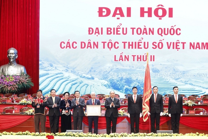 Thay mặt lãnh đạo Đảng, Nhà nước, Thủ tướng Nguyễn Xuân Phúc trao tặng Huân chương Lao động hạng Nhất cho Ủy ban Dân tộc.